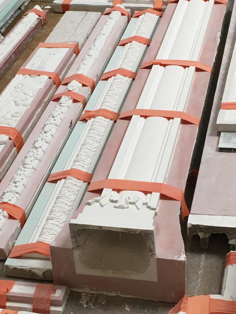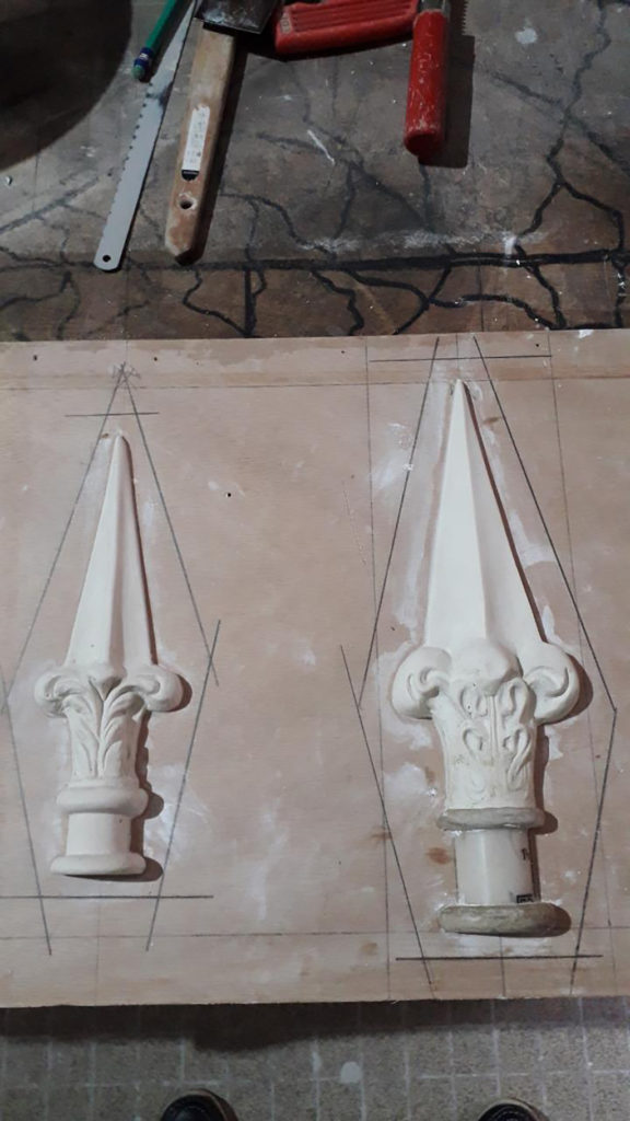 Pour ce faire, il part de dessins à partir desquels il réalise des moules et des formes variées. Le «staff», versé dans le moule, prendra alors la forme désirée qui sera, après séchage, démoulée et prête à être posée sur site pour l’orner.
