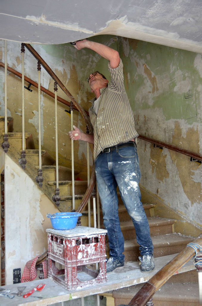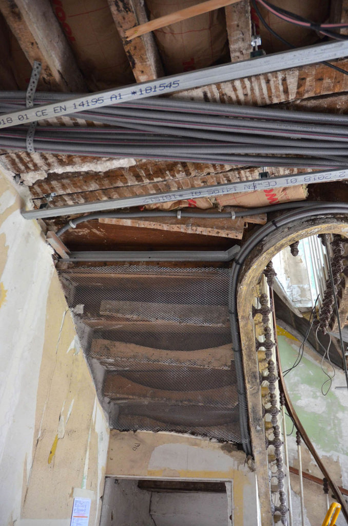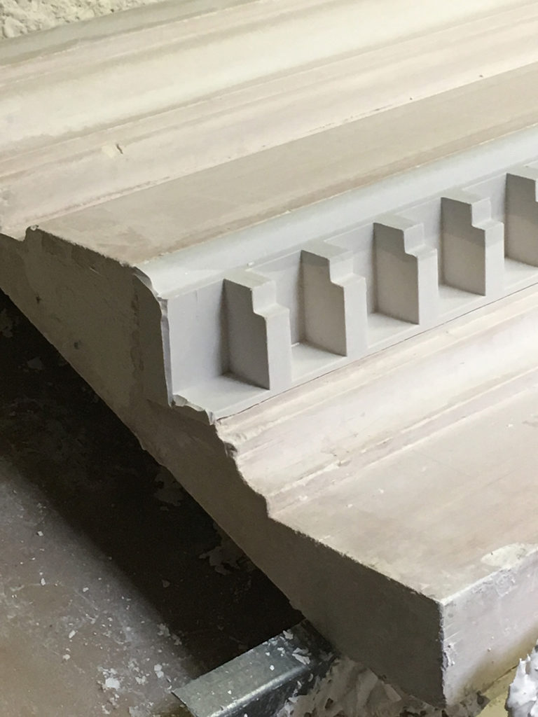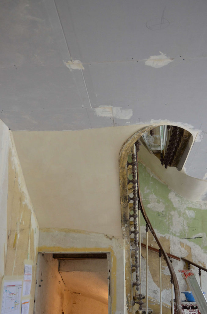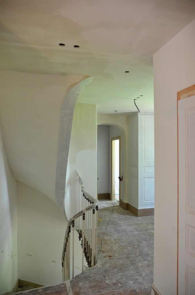 Le staffeur est également capable de travailler directement sur site pour restituer, par exemple, la sous-face d’un escalier ou bien encore mouler et restaurer en staff des pointes de grille décorative comme ce fut le cas sur le chantier de la maison de maître de Picardie. Il s’agissait d’une sous-face qui ne pouvait reprendre ses courbes que par le travail de la main de l’homme. Cette tâche fut confiée à un homme aussi habile et ingénieux qu’artistiquement sensible. Ces qualités sont indispensables à ces professionnels qui interviennent le plus souvent dans la restauration de monuments historiques, anciens ou d’architectures contemporaines très exigeantes.